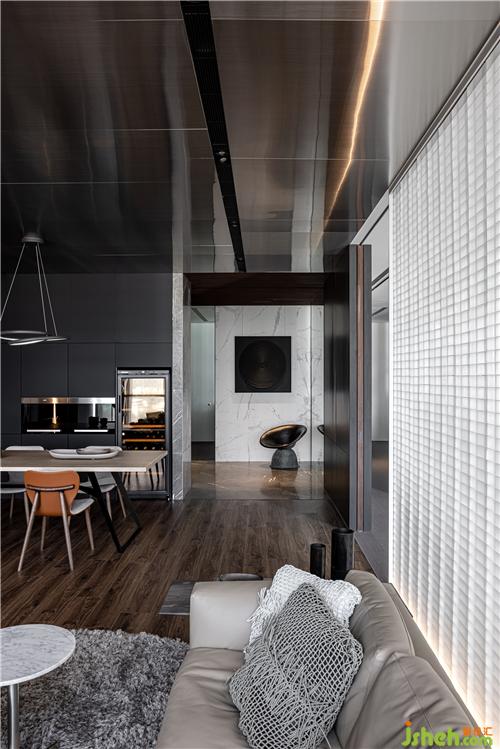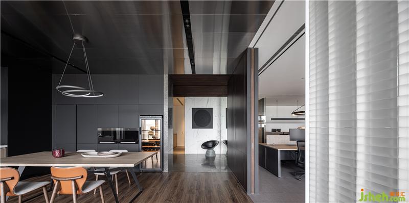 人一天有三分之一的时间处于工作状态中,因此我们希望能将生活气息带入工作环境,让空间本身能同时满足物理和心理上的需求,台湾室内设计师创造出在工作的闲暇之余也能沉淀和放松的环境。我们在空间中划分出社交场域、工作场域以及属于个人的私密场域,将磨砂玻璃砖的柔和折射光线作为场域中介,软化隔间的定义。