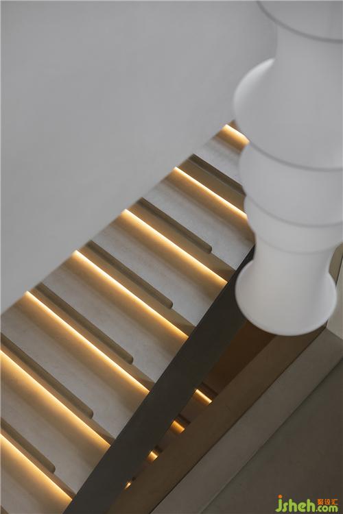 一入梯厅即为一开放延伸空间,用微建筑的概念创造出一条私密的轴线,最适当的将楼层该有的机能,都缜密的收在这条轴线,合于空间。