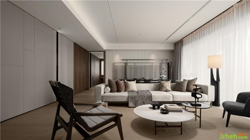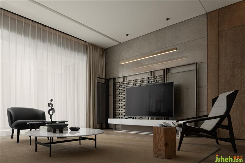 客厅结合大面积采光,围绕着真实触感的空间,开阔的视觉,感受光线流动,在脚步移动之间的气场。