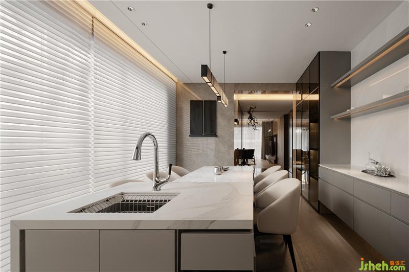 A户形呈现出不同以往人文风格的设定,运用底蕴温厚的真实材料,在沉稳与度假感之间取得协调。