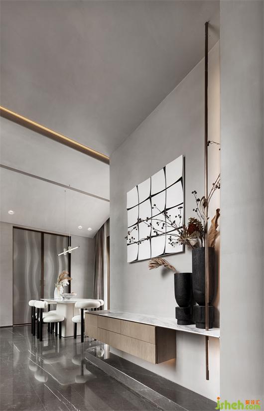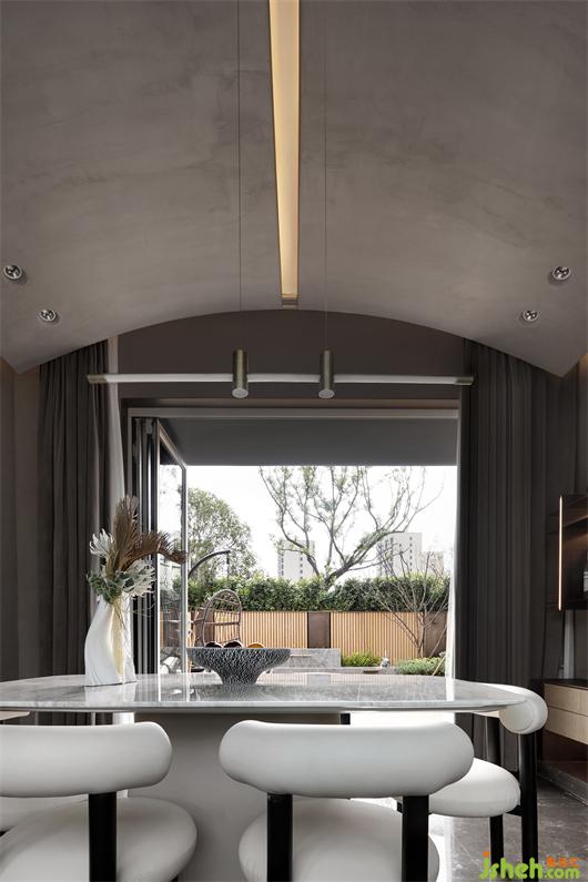 餐厅与前后庭院连成一体的“社交模式”,样板间设计也可以成为各自独立的“陪伴模式”。多变的空间展现了业主夫妻崇尚自由、钟爱品质生活的态度,让人从多维的生活场景中感知自然气息与艺术风尚,伴随着富有格调的三餐四季。