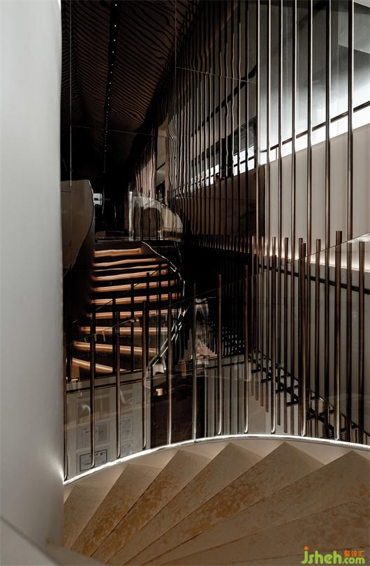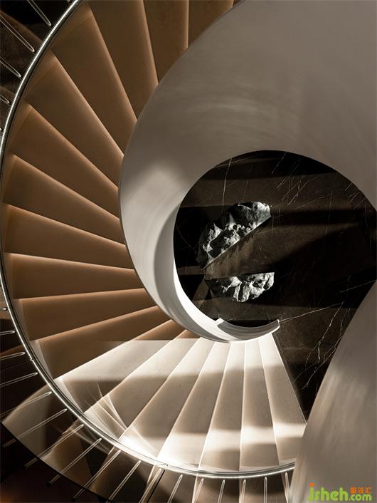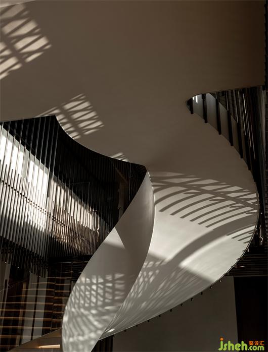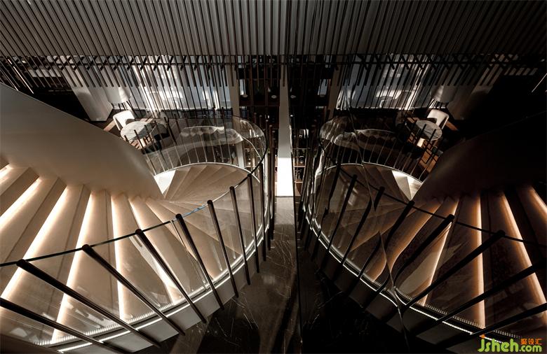 站在空间中心处,以洽谈长桌爲中轴、艺术楼梯爲核心。可以向两个分支张望,让游者自然的就顺着光和景观,愉悦地徜徉其中。