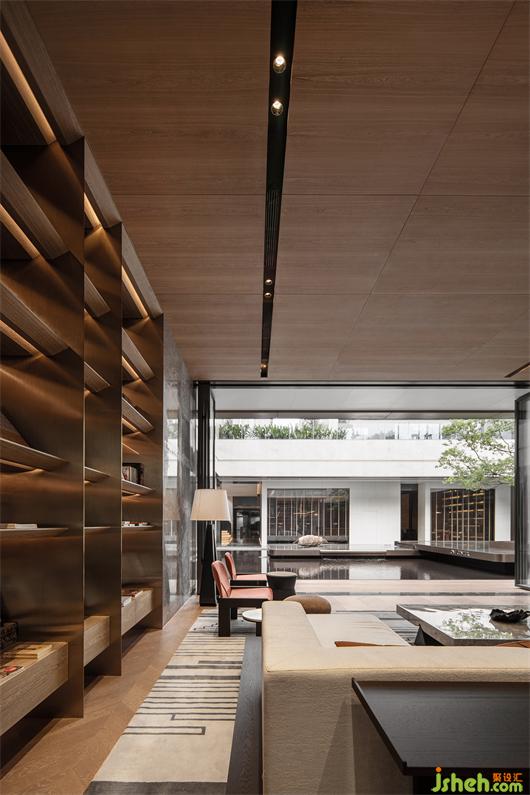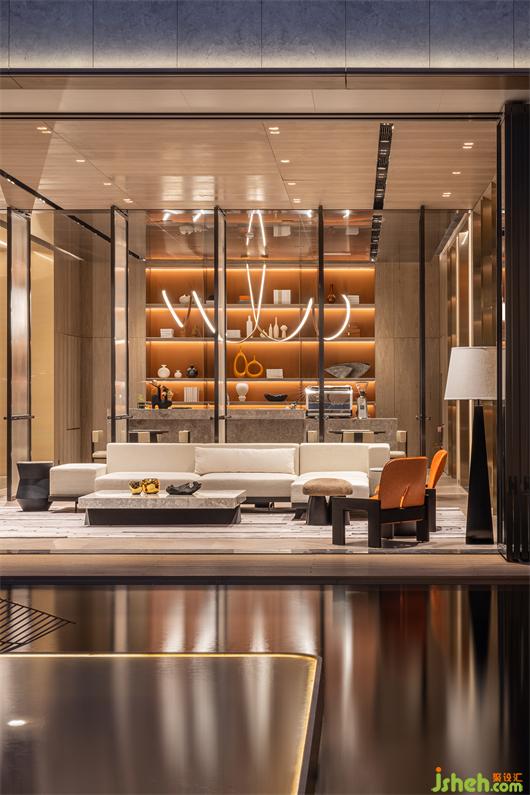 售楼处操作方式有别于以往的临时性建筑,利用天然的地势高差将主建筑的负一层打造为售楼处,采用私人社交俱乐部的营运设定结合高定化会所机能,未来售楼阶段结束后直接转化为会所,交由专业营运机构采用会员制运营,为小区提供社交空间。