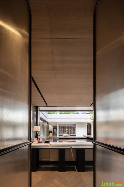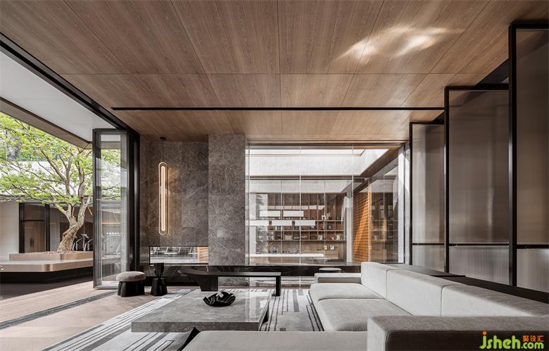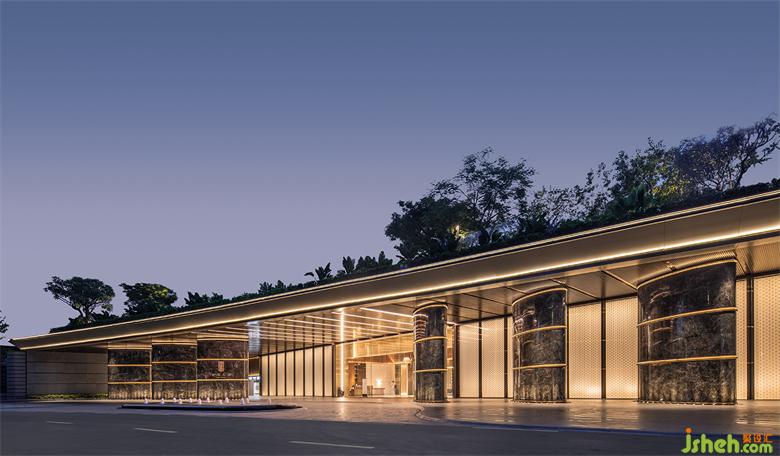 项目位于广州增城荔枝文化公园边上,紧邻公园内600亩绿色森林,绿意环绕,会所设计项目宗旨希望打造隐身在绿色树海中的世外桃源,透过行径的路线与空间的序列排布,营造出沉浸式的空间体验。