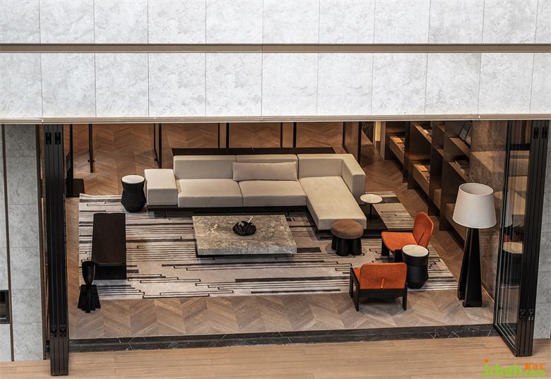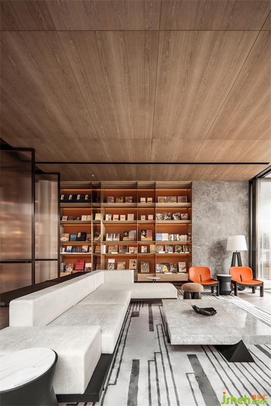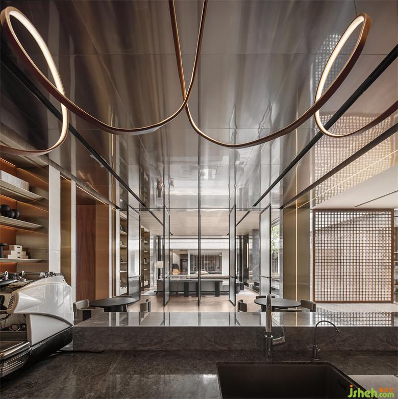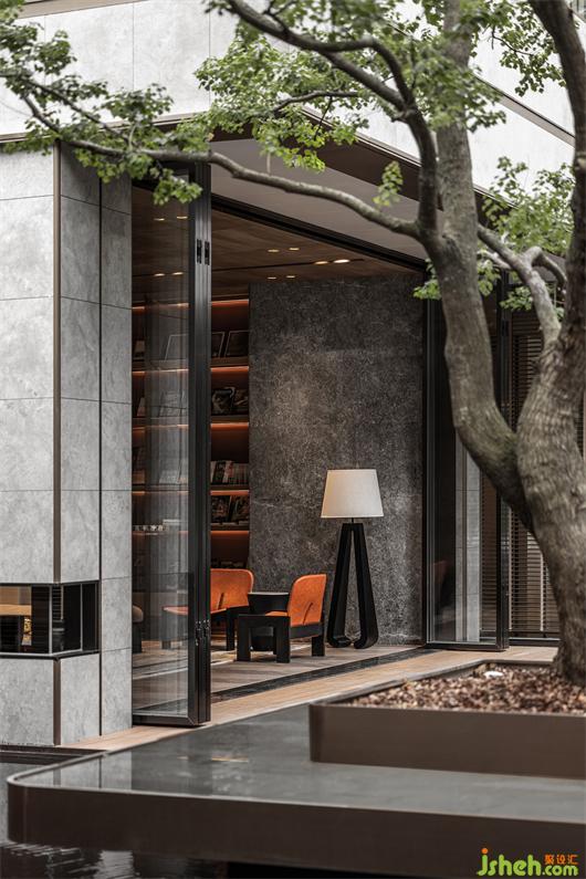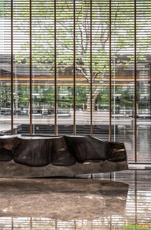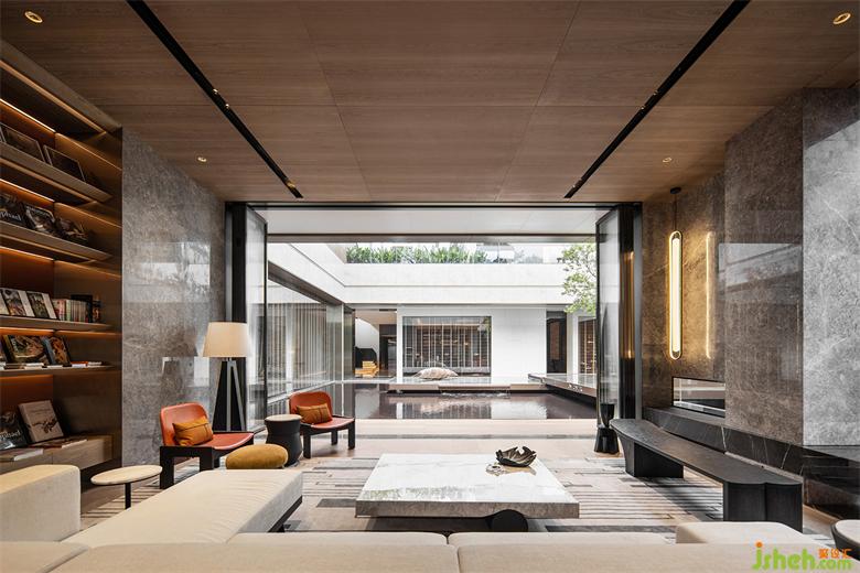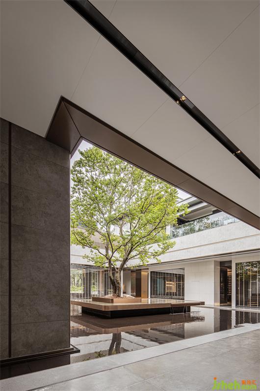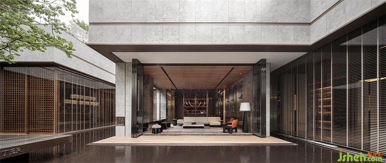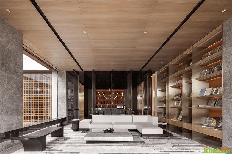 本案建筑量体为五栋塔楼,一层为庭园景观连接户外露天泳池及吧台区,中间开有口字型大型采光天井,会所设计将光线及自然景观引入负一层的会所空间,透过中庭水面的波光反射创造空间中的戏剧性。