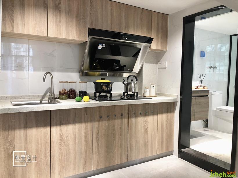 根据公寓的性质以及面积的限制考虑,并没有选择做封闭式的厨房,而是设计了简单直接的开放式厨房,更适合现代年轻人的生活习惯,让空间显得更加的开阔。