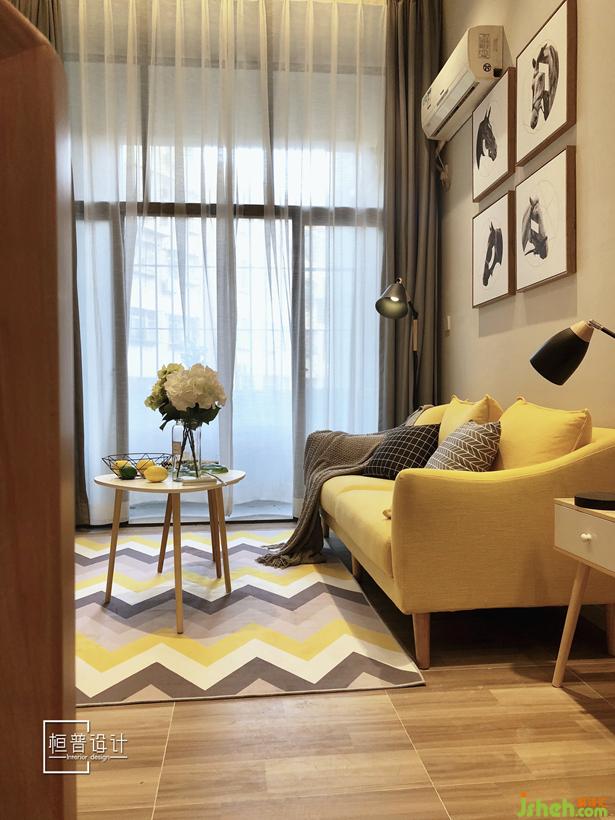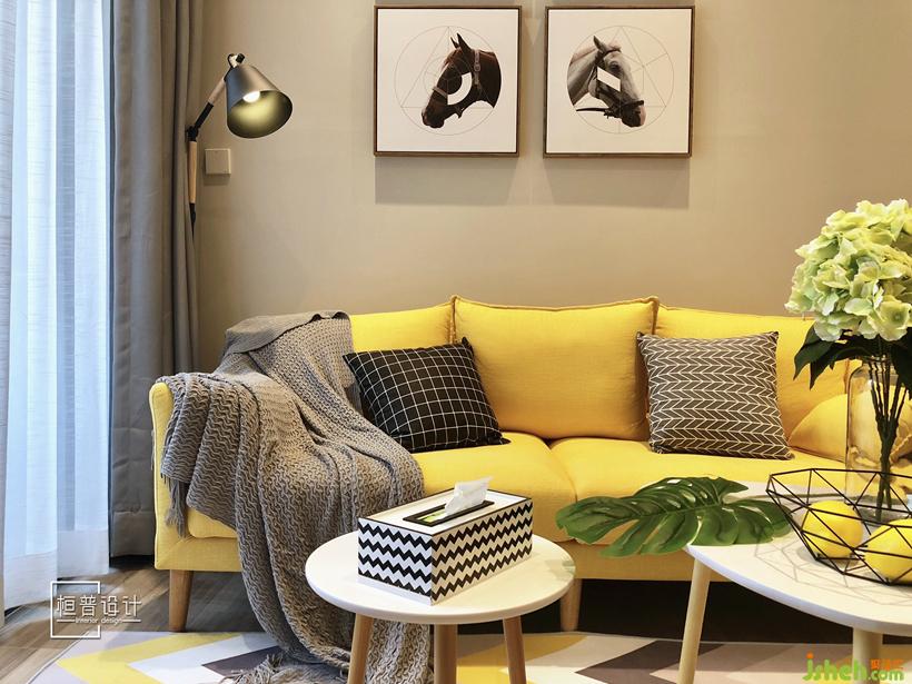 为了让原本并不太宽敞的空间可以更加的开阔,所以客厅与餐厅并没有做区域间隔,整体浅驼色的背景让空间更加的整体统一,而家具选用了北欧风格常用的木色,并增加了非常跳跃的色彩,让整体空间显得格外温馨,与经典黑白灰配色相比更具活力,更适合年轻人的对生活的追求。设计公司
