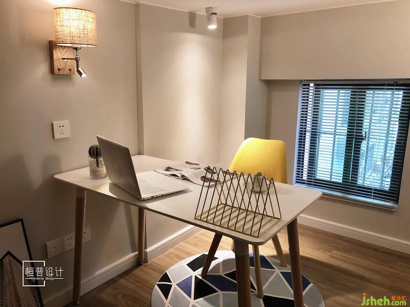 书房是上班一族不可或缺的空间,书房安排在最里面的房间,即安静又私密的小空间,空间即满足了工作的需求也在转角处增加了一处休闲角落,小空间满墙的书柜加上小小的懒人沙发,设计师用心的设计了一个玻璃小窗,保证采光的同时又可满足小资的私人独处空间。