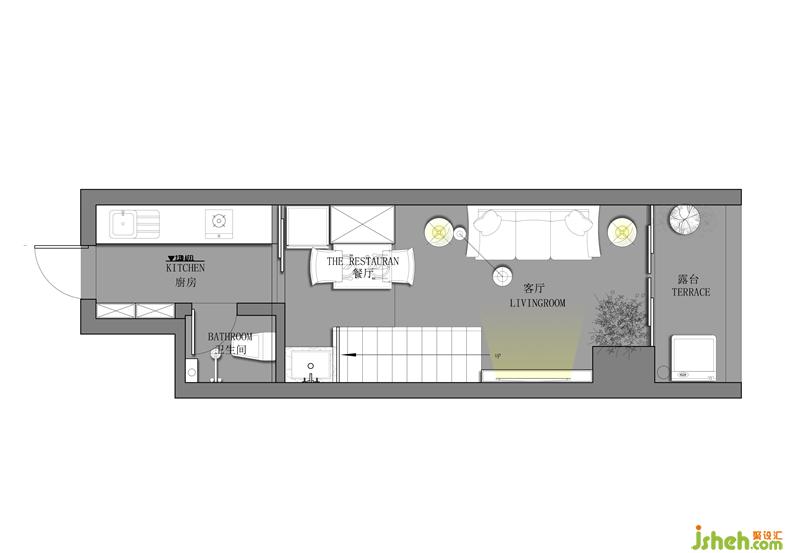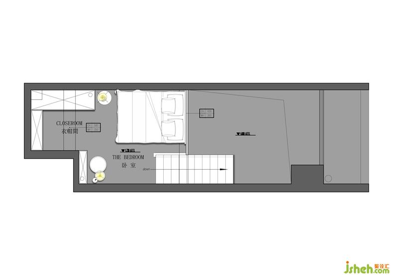 因为考虑是单身公寓的原因,二层空间设计为半开放形式,比起隔墙落地玻璃的的形式会大大增加空间的采光,配上轻柔的纱帘也保留了空间私密性。让整体空间即明亮开阔又不失空间的功能性。深圳室内设计师