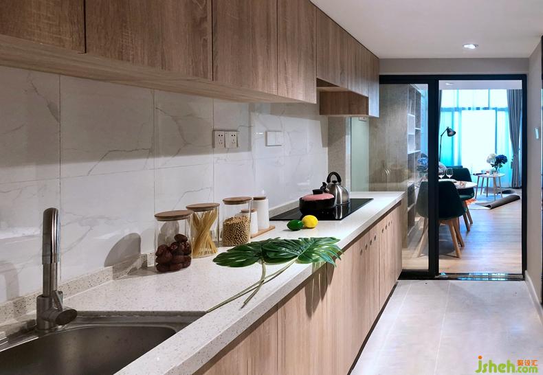 直条式的橱柜更好的利用了玄关过道的空间,让原本单一的空间增加了更多的功能性。开放式的厨房更适合年轻人的生活习惯,即满足了生活需求又方便打理,正谓麻雀虽小五脏俱全。深圳室内设计师
