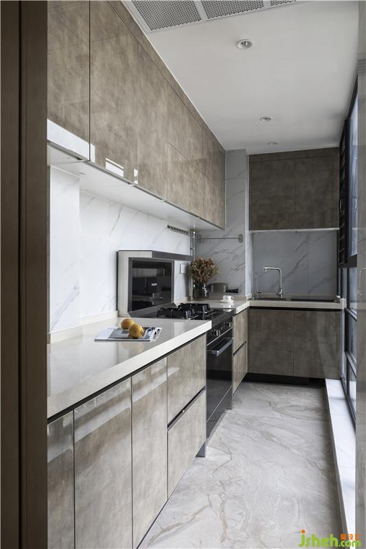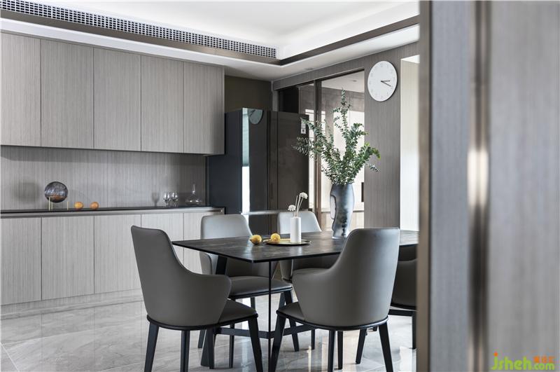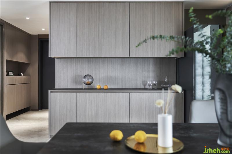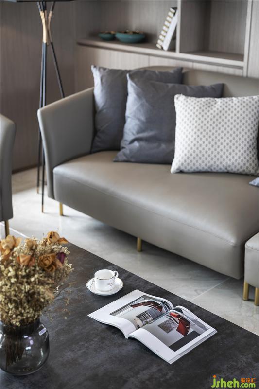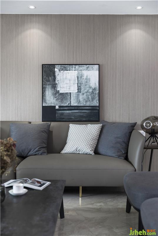 简质空间,客厅大面积的大理石,与木饰面的碰撞,搭配冷色系沙发,使整个空间成熟稳重,又不失一些木质带来的轻与暖。