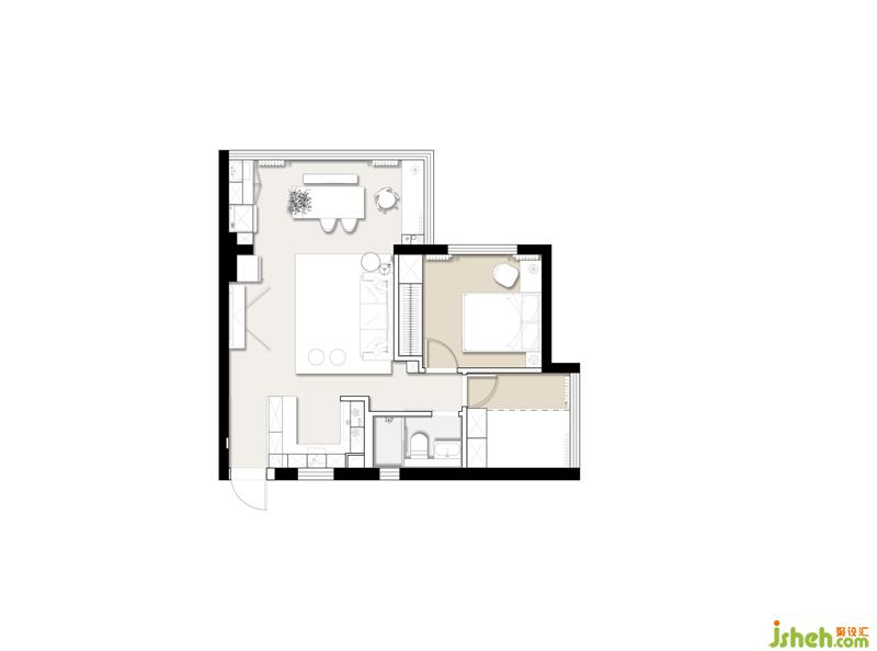 原始空间格局方正,但实际面积并不大,按原始格局的规划,客餐厅特别拥挤,阳台比例太大,和整体空间比例不协调。