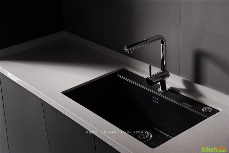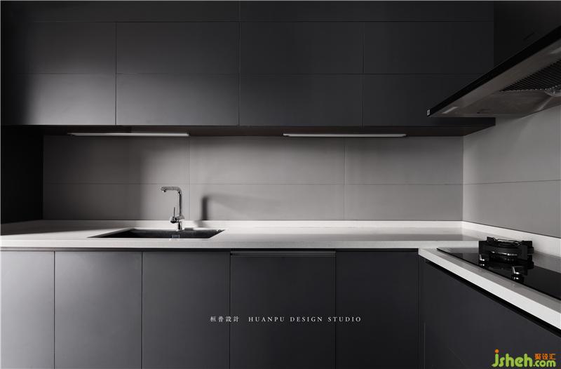 黑白灰色调,L型的橱柜设置,把空间实用性发挥到极致。干净整洁,仿佛是把杂志宣传图里的厨房搬回来了家。