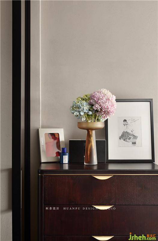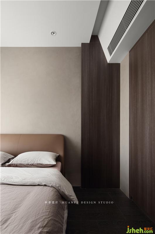 父母房依旧回归简单,侧面做了单边护墙板暗藏灯光的设计,用最简单的灯光设计提升整体空间的氛围感。