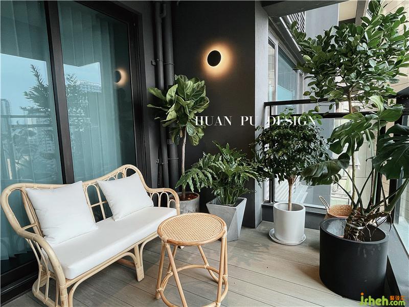 阳台也是整个设计里最舒适的空间之一,藤编家具与灰色防腐木的搭配,并没有违和感,绿植的加入,月食壁灯的点缀,无论是白天还是晚上,都让整个阳台呈现最舒适的状态,这大概是我理想阳台的样子。