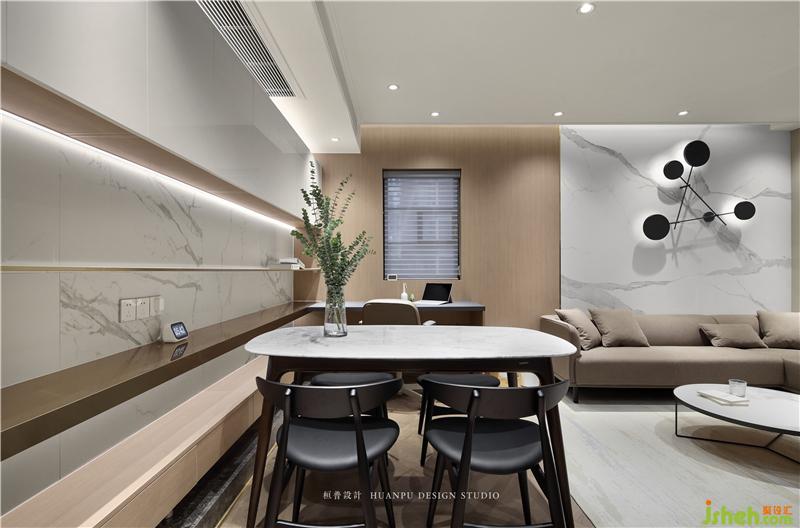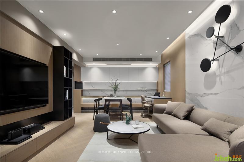 大理石墙上的简约壁饰,点缀着这片月光,让客厅在整体简约的同时有着更加丰富的层次。