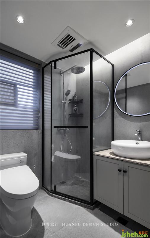钻石型玻璃门的浴室,将家居设计空间的利用发挥到了极致。盥洗室采用灰色大理石与材质搭配,格调彰显。我们在梳理空间格局时,重视强化功能与形式的统一性,用简练的笔触描绘出质朴纯粹的空间效果。