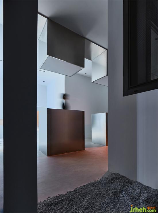 看似冷硬的未来科技感,通过“借景”的过渡带来平衡,形成了一种既相互联结又相互独立的空间格局。系统门窗展厅设计色彩、质感、灯光、细节,层层深入,构建出连续、流畅的逻辑关系,形成视觉延伸。