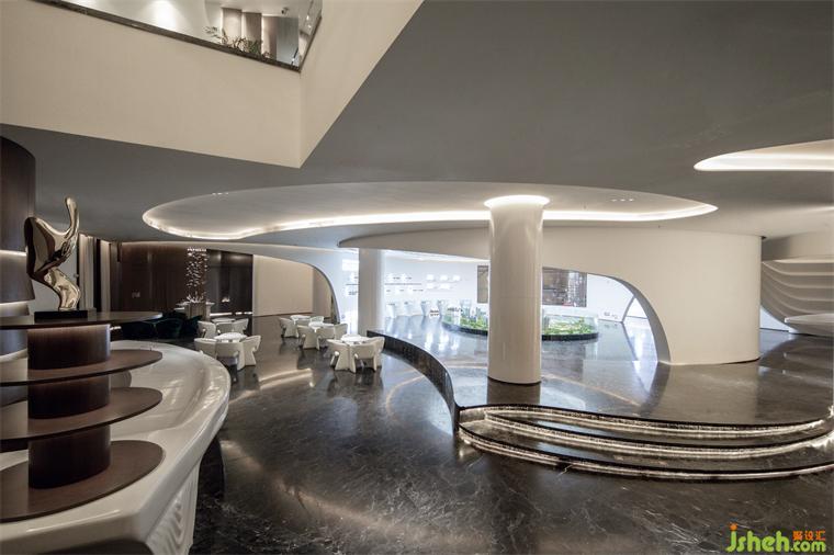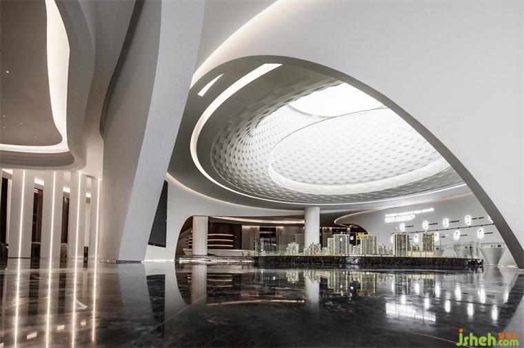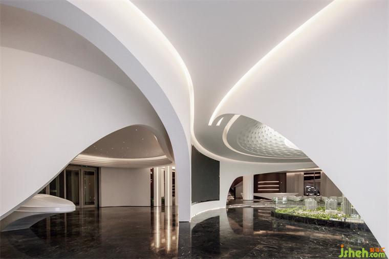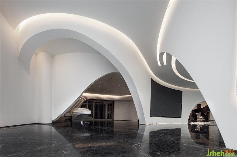 从宇宙创世与生命起源中汲取能量,以东方曲线介入,使空间如同一块被温柔翻向室内的自然,曲线构成了其内部的整个宇宙。