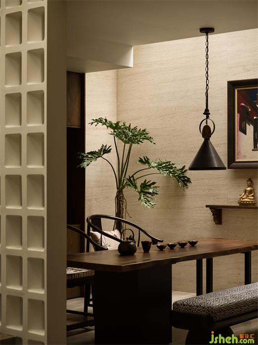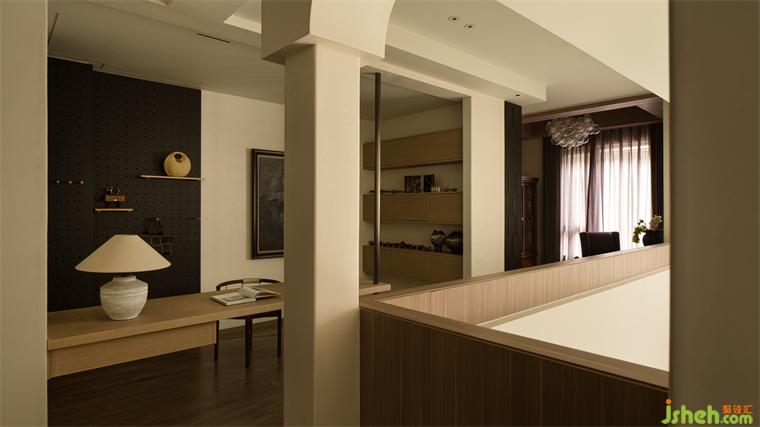 二层成为夫妇两人的个人爱好表达专属区域,安静的佛堂与茶室共立,借道而来的天光增加肃穆禅意,手工制作区与把玩展示开放之间 书香琴声相伴。