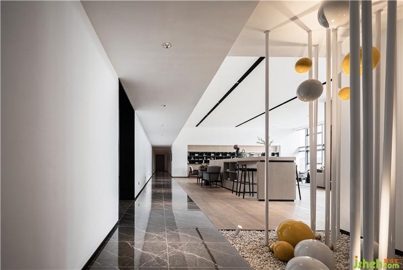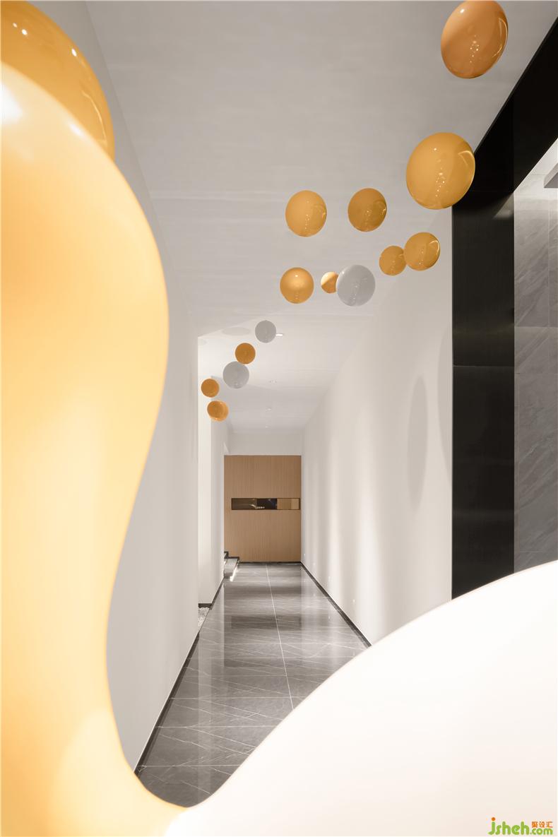岩石拥有了被时光打磨的形状,与一抹明黄的亮色为叙事旁白,与前厅的泡泡相呼应,装修设计空间尺度之间蕴藏着微妙的平衡。