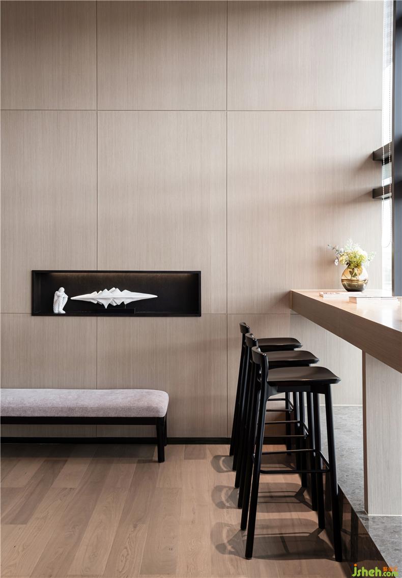临窗一隅可眺望清幽,静谧的白龙潭,唤起人心中对自然的崇拜和向往。对话区整体布局疏落有致,材质的温润与艺术品的雅致自成一副休憩情境。