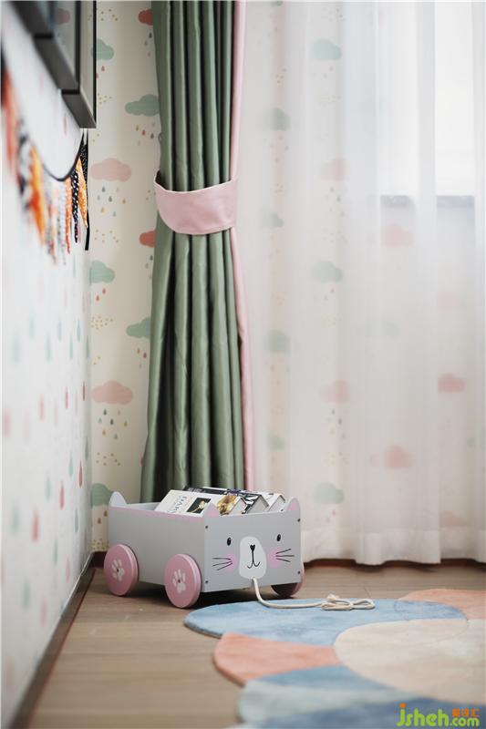 女儿乖巧可爱,是爷爷奶奶开心果,房型床是他们给她最好的保护,一个属于她一个人的空间;星星月亮只属于她一个人,床上都是她喜爱的样式抱枕。样板房设计