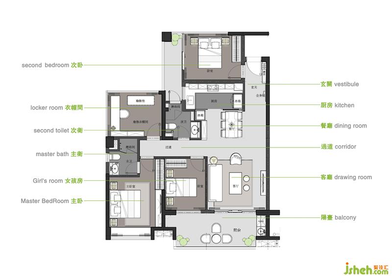 灰白色色调基底色,将有温度的设计融入西方的文化理念,结合丰富的色彩蓝色,绿色,粉色,红色,金色等结合,一览无余的色彩盛宴。装修公司
