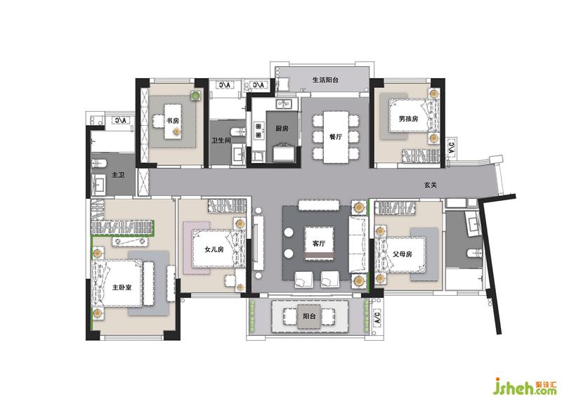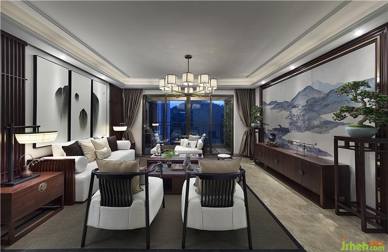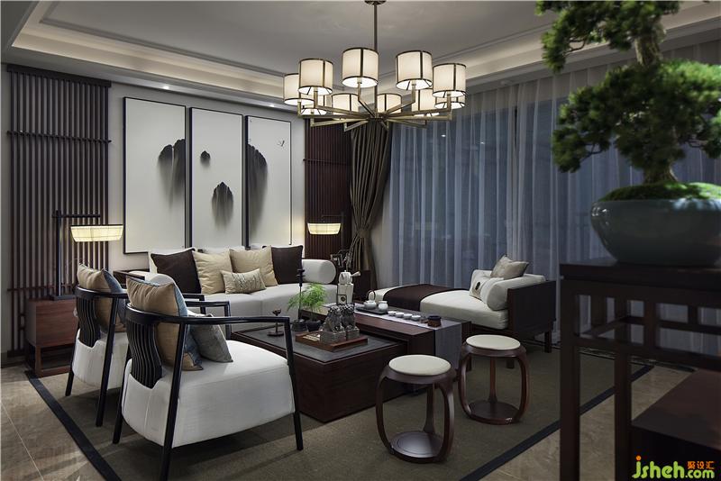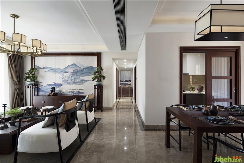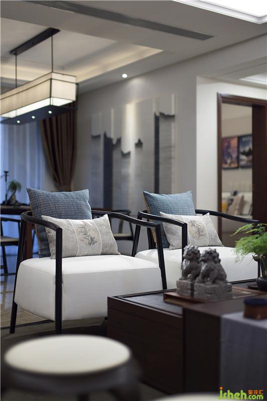 本案以“禅茶初味”为主题,营造一个富有人文气息且禅意的东方诗意空间。以实木,中式特有符号,茶,棉麻布料等为元素,色彩以深木色为主基调,搭配着米白色,哑灰色,漆黑色等色调慢慢展开。简洁雅致的新中式家具为线条轮廓,稳重的深木色配上啞光烤漆赋予空间儒雅幽远的风神骨相。上乘的纹理质感与不同的材质面料穿插其中,碰撞出新中式与传统中式相结合的雅致空间。装修公司