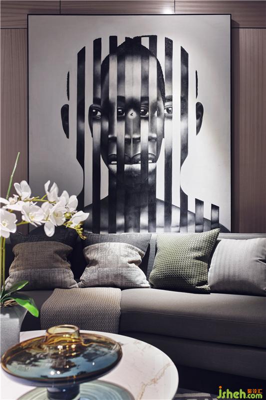 现代的空间中,置入壁炉、皮革,等赋予了西方传统贵族气息。挂画更是行走于抽象与具体之间,强化了空间的艺术精神,是对艺术救赎力量的信仰,也是一种即兴发挥。