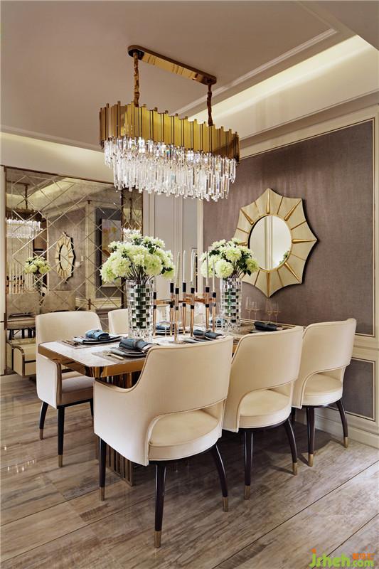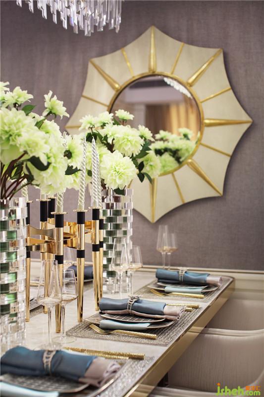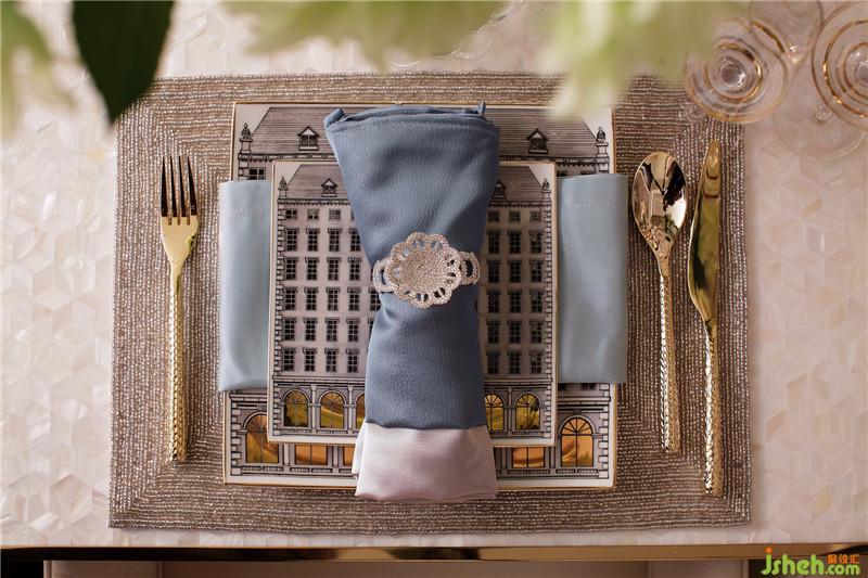 餐厅光线温暖,以金属吊灯营造温馨柔和的氛围,搭配充满气质的餐椅,凸显优雅品味,再以蓝色餐巾点缀营造了大气又不失清爽的温馨气息。如果说有一种颜色能驱散阴郁,带来治愈,那就是蓝色。它拥有迷人的优雅与灵气,为房子注入一份自然的活力,并将它高贵的气质渲染的淋漓尽致。装修设计
