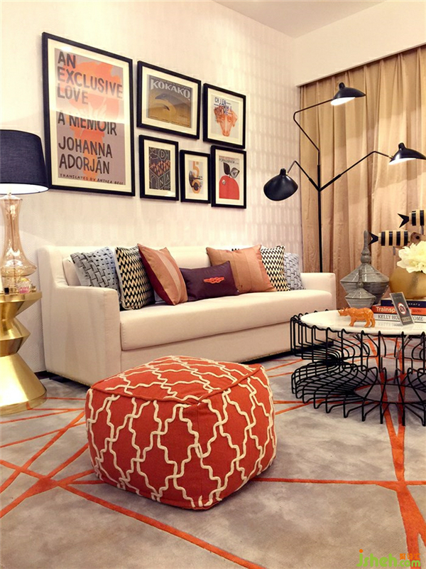 女主人单身女性,为高品质生活追求者,希望以桔橙色和暖米色为主色彩,加以黑灰,亮金色配色来装饰整个空间。