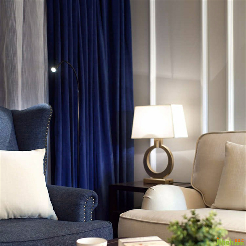 简洁居家,空间主体以白色为主,蓝色抱枕,窗帘,边椅正好做为点缀。室内设计师