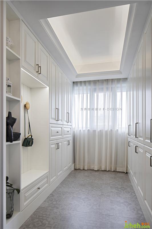 玄关处简洁大气的鞋帽间,白色柜体与线条便是所有,卸下所有繁琐,空间留白。