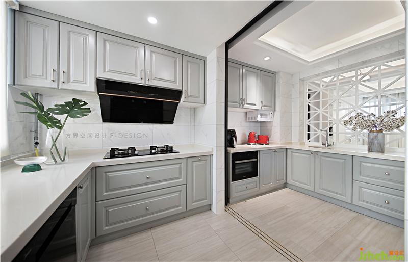 2.厨房开放式与中西结合的设计,让烹饪与用餐可以处于同个空间并且烹饪方式更加多元化,女主人在厨房烹饪,男主人在餐厅看书陪伴,老人看着孩子在不远处玩闹,夜晚时间也在温馨中缓缓度过。装修设计