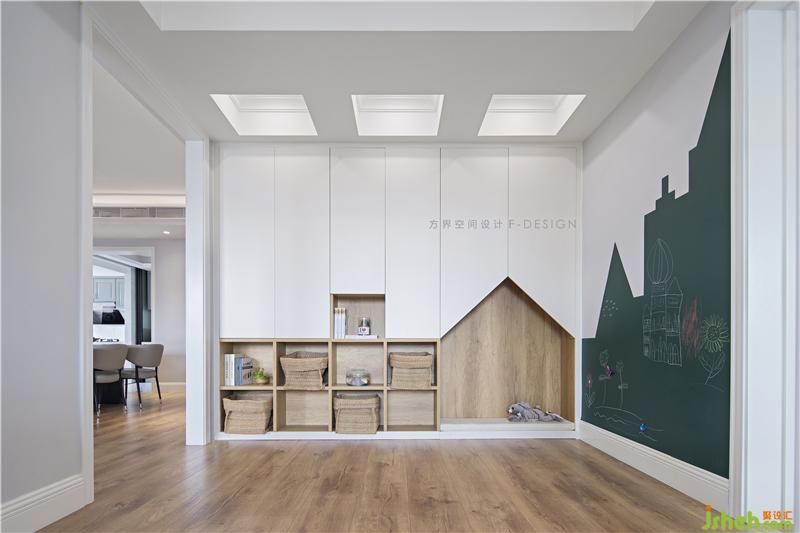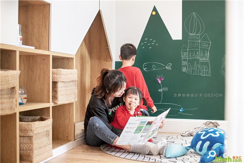 儿童阅读区我们收纳柜做了分色,下方木色开放柜可以收纳儿童绘本,方便小主人公们取放。可以让他们随意涂画的涂鸦墙,充满童趣,这个年纪,正是发挥想象力的时候。大人可以在这个空间陪伴孩子学习或玩闹,孩子的童年记忆都是充满着爱。