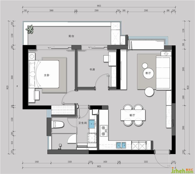 书房,避开外界的喧嚣,不似卧室的慵懒,精神处在恰到好处的清醒当中。设计了整面书柜,增加收纳空间,在里面摆上自己喜欢的物件,发呆、听音乐、打打游戏都是幽然自在。