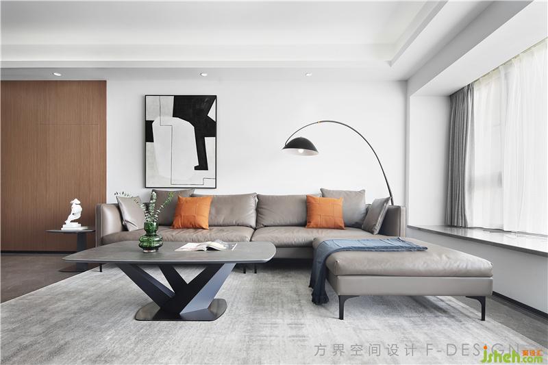 无主灯的设计,让客厅空间简约时尚,简单的色彩作为跳色让空间鲜活而真实;