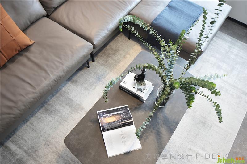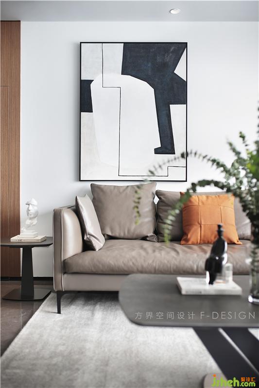 皮质松软的深色沙发搭配上沉稳内敛的茶几,让整个客厅恩赋予极简、宁静、沉稳的气质。沙发上小憩,或是席地而坐,细细品一杯清茶,感受生活的美好。