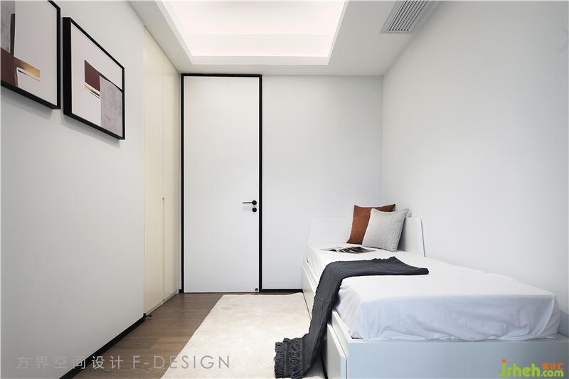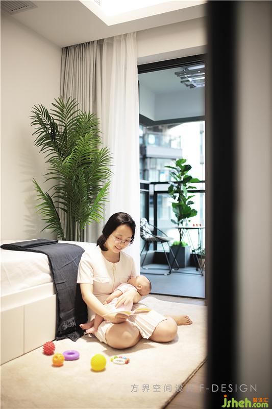 房门采用一门到顶的形式;大面积的白色更能表达空间的无限张力,让空间变得更加纯粹更加安静。房间没有增加太多的软装,等宝宝长大的时候,这个空间就可以随意改动了,即可变成游乐场、娱乐区、阅读区,每个空间都在上演着各种可能。