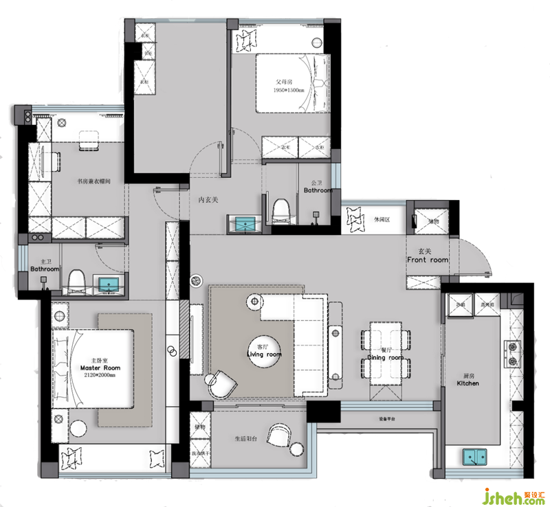 L型浅灰色布艺沙发,让整体空间沉静;面料的柔软舒适,室内设计师展现出一个家的恬静温柔,与之达成协调。