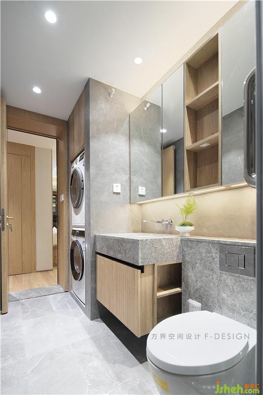 次卫也是呼应整个空间的色调,洗衣烘干一体,干湿区域分离,干净且易打理。