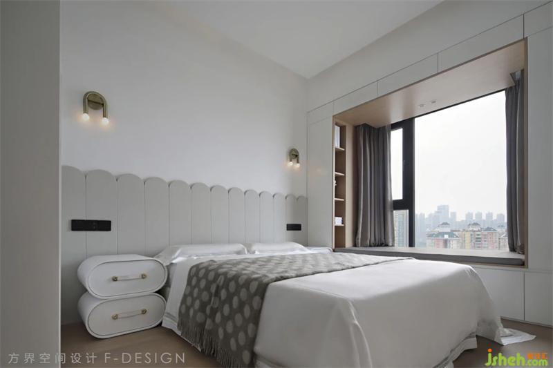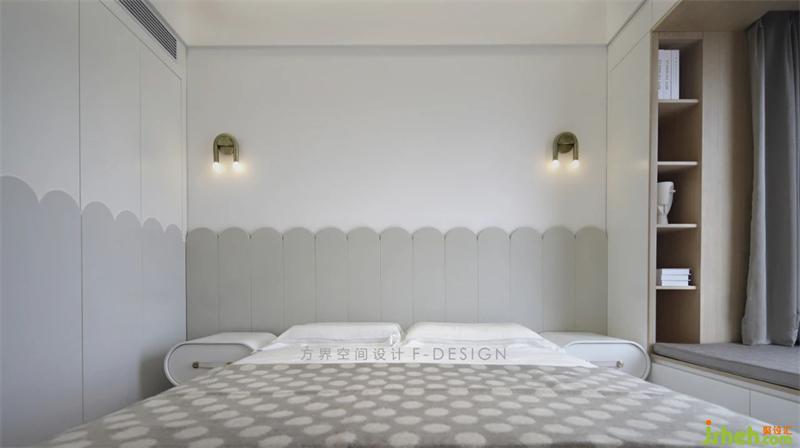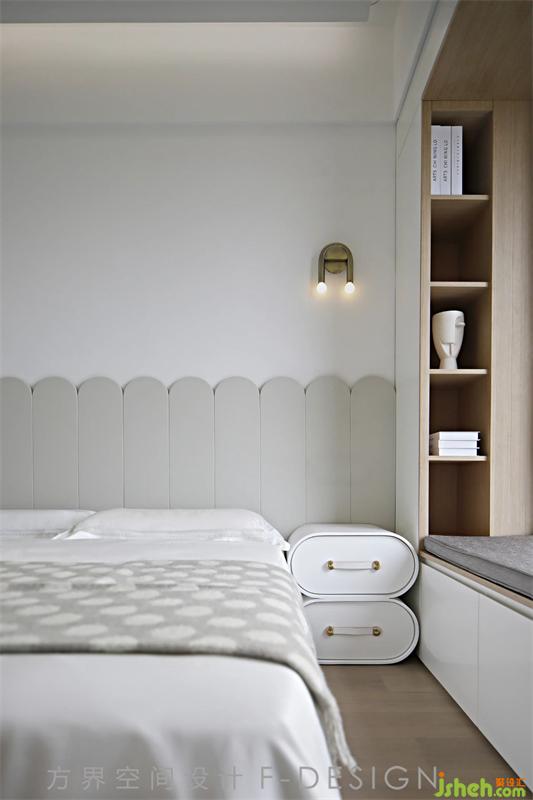衣柜门圆弧形造型与床头靠背呼应,圆与圆之间的相互碰撞。