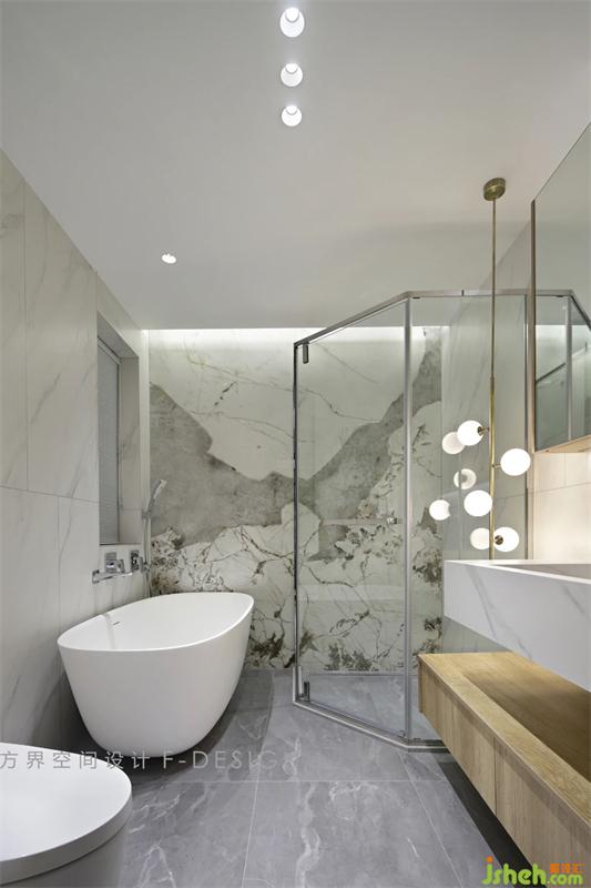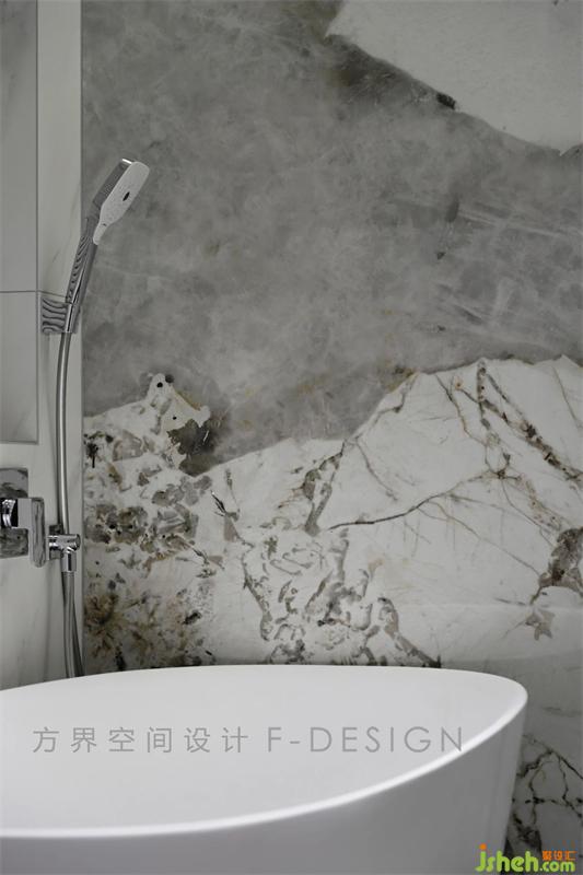 低调奢华的装修设计,完整的水墨大理石山墨水画的景色。大理石那种自然简洁的质感,用在卫生间让整个卫生间空间都显得更加优雅高档,且不容易变形,抗脏等特性。