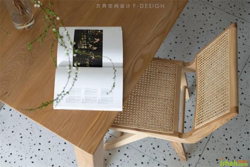 昌迪加尔餐椅搭配原木餐桌,恰到好处的线条比例和藤编细节之美。