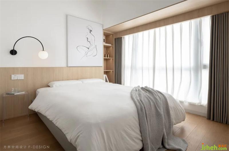 The log and white in the master bedroom continue the warm tone of the living room. The design of the half wall improves the sense of color matching on the wall, which is simple but not simple. After the transformation of the master bedroom, the area increases, to the couple two people leisure and comfortable private living space.