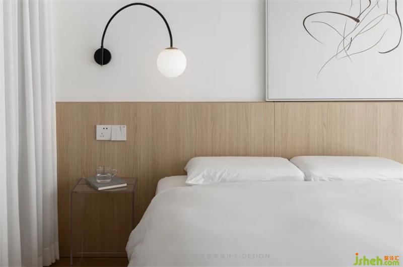 主卧原木与白延续了客厅温暖的基调,半墙设计提升墙面配色层次感,简约,却不是简单。深圳家居设计改造后的主卧,面积增大,给夫妻二人闲适的私人生活空间。