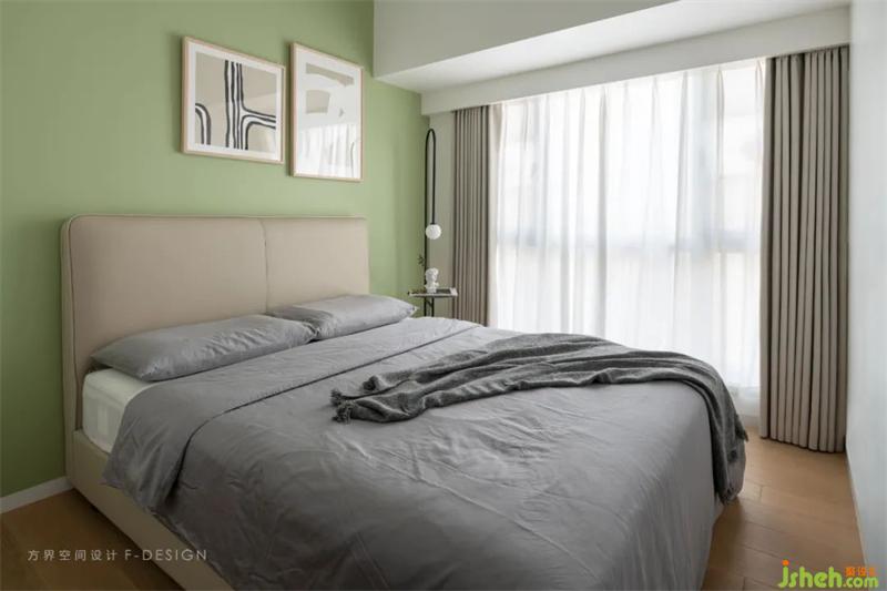 To the bedroom character, comfortable is the most important. The highlight of the design of the second bedroom is the color matching, which continues the overall casual and warm tone. Green and gray are adopted to make people easily feel the relaxed atmosphere.