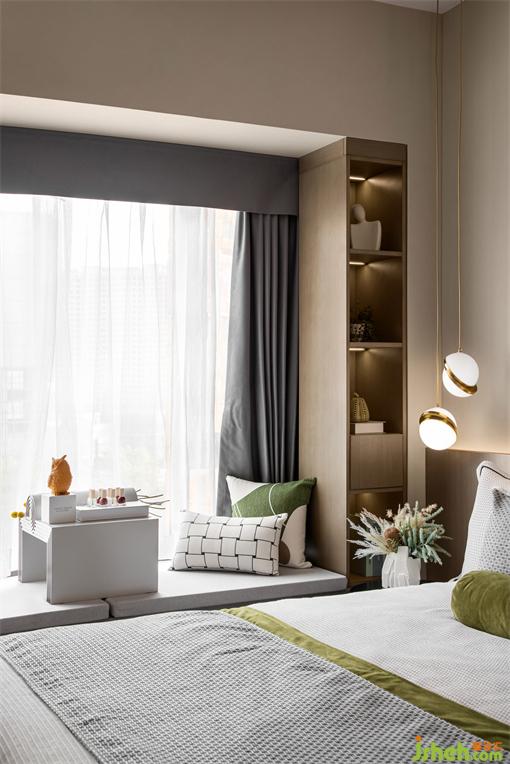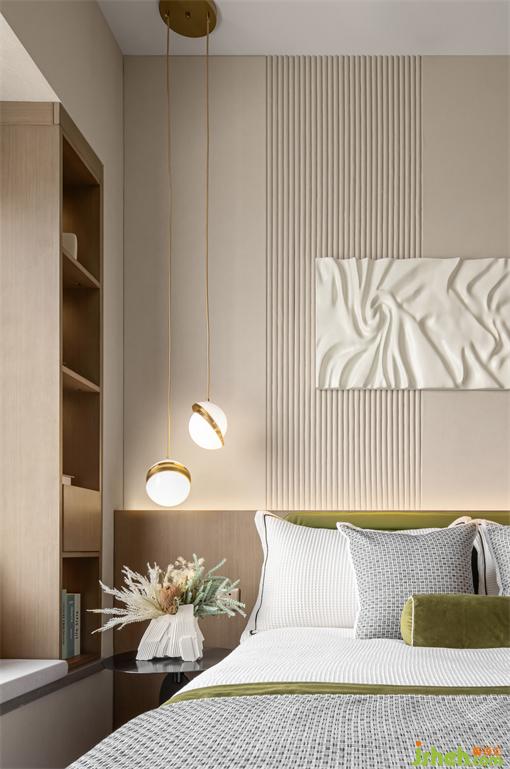 简洁的设计让慢生活增添灵动,温润木艺与品质软包融合,惠州家装设计让睡眠变得柔软陪伴悄然入梦。