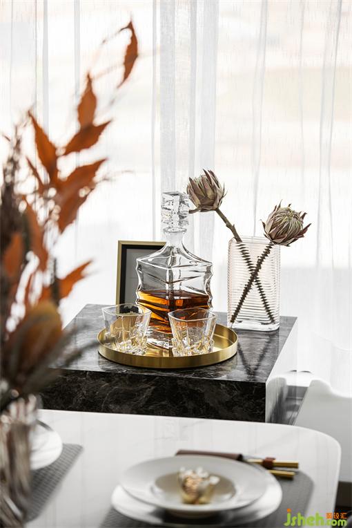 惠州家装设计沙发丰盈饱满、软弹舒适,搭配美酒鲜花,安逸闲适静享优雅与惬意。